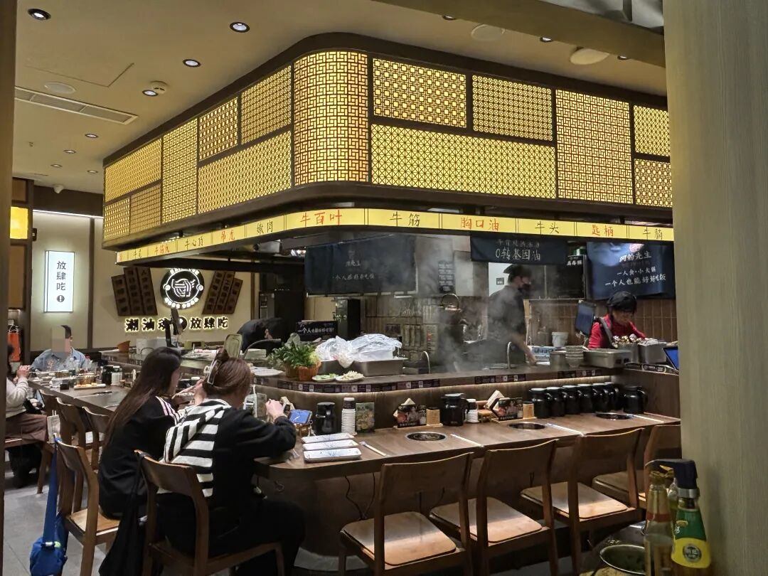 海底捞去年在广州开业的大排档店,彻底打破了后厨与餐厅的界限,选餐区与食材处理区直接相连,顾客可以自由穿梭于陈列着超过200种食材的各个档口之间。这种动线设计,将传统餐厅的被动点单转化为“逛、拿、点”一体的市集体验,让顾客在参与和互动中,切身感受到食材的鲜活与丰富。