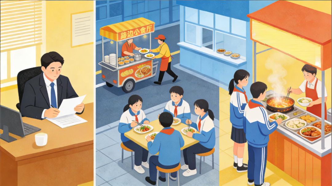 这不是个案。这是当下高校团餐的集体尴尬。我们砸重金打造的"高端食堂",正在被一群没有营业执照的路边摊按在地上摩擦。