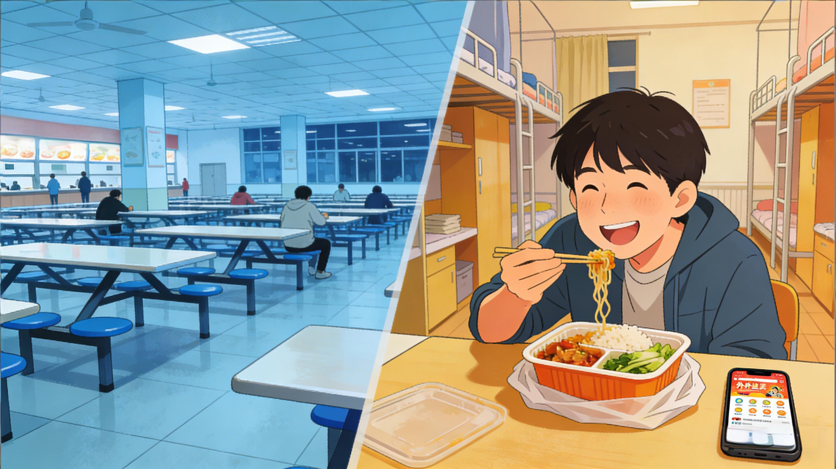 当食堂还在靠涨价、降质维持运营时,外卖已经彻底攻占了校园。