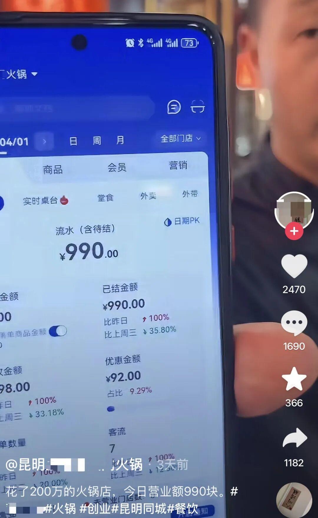 没错,4月4日,昆明一位重庆知名品牌加盟店老板,在社交媒体上发了一条视频,在餐饮同行中掀起轩然大波,道尽了行业的无奈与心酸。