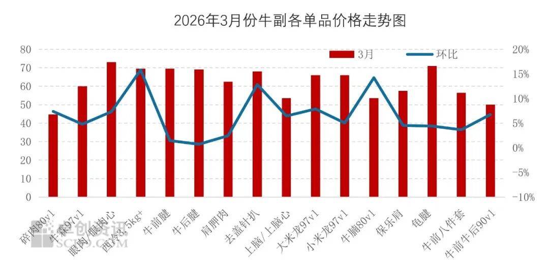 从供应端来看,养殖端多数看涨后市,挺价惜售居多,出栏积极性不高,导致屠宰端收购难度增加,牛肉供应量减少;从需求端来看,需求处于陆续修复状态,牛肉销售速度一般;综合来看,2026年3月肉牛价格上涨导致成本增加,月内牛肉均价上涨。